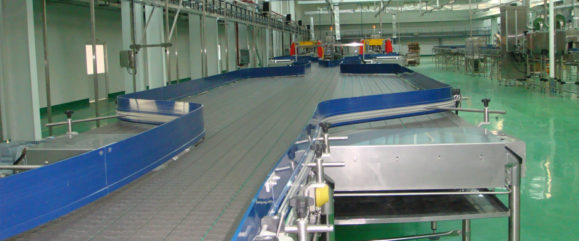 物流輸送設(shè)備:模塊網(wǎng)輸送機(jī)、滾筒輸送機(jī)、頂板鏈輸送機(jī)、皮帶輸送機(jī)、螺旋輸送機(jī)、升降機(jī)、夾瓶輸送機(jī)等輸送系統(tǒng);